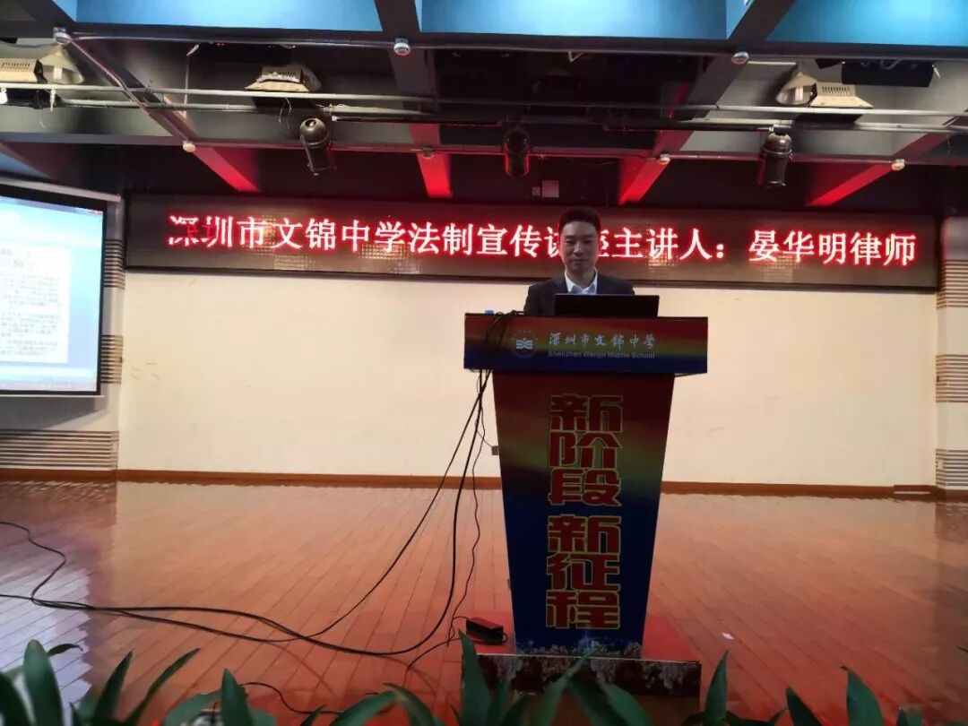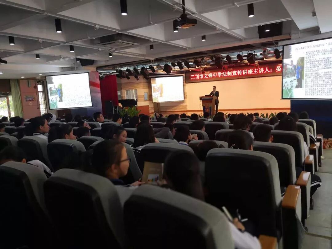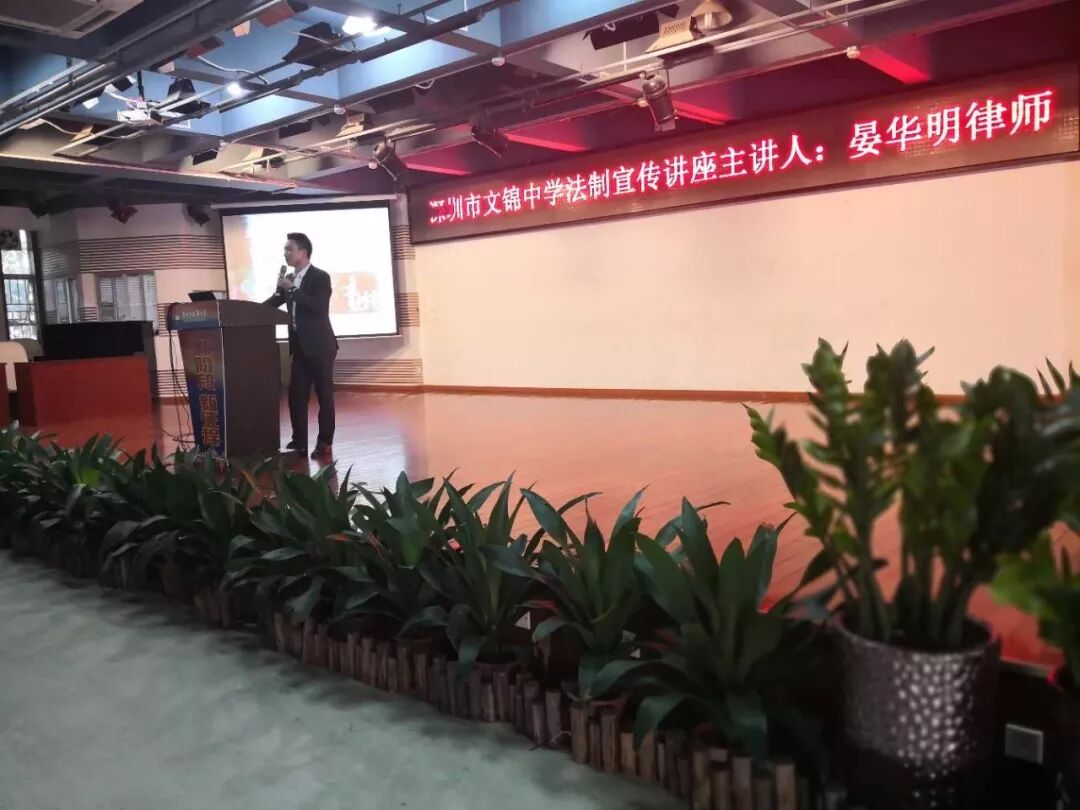 为了增强青少年的法律观念,有效预防青少年犯罪,并帮助青少年树立自护意识,深圳市文锦中学于2018年3月12日举办了“预防青少年犯罪法制教育”讲座,现场邀请了广东普罗米修律师事务所晏华明律师进行讲课。课前,晏律师就未成年人相关的法律问题作出了详细的解释。